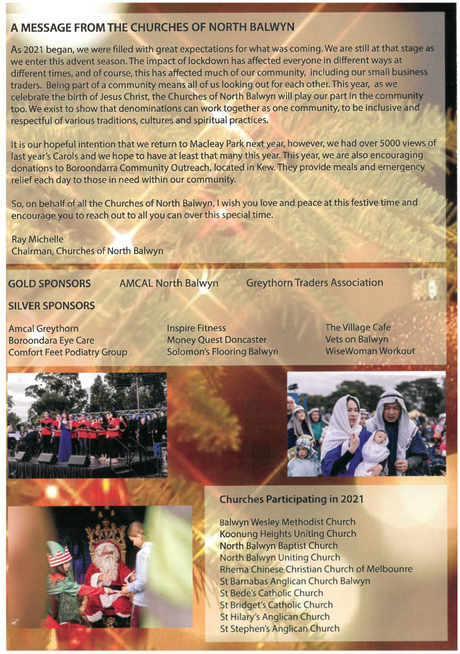 Visit the Carols in the Cloud website (www.carolsnorthbalwyn.org.au) for more information and to tune in for the livestream on 11th December 2021.